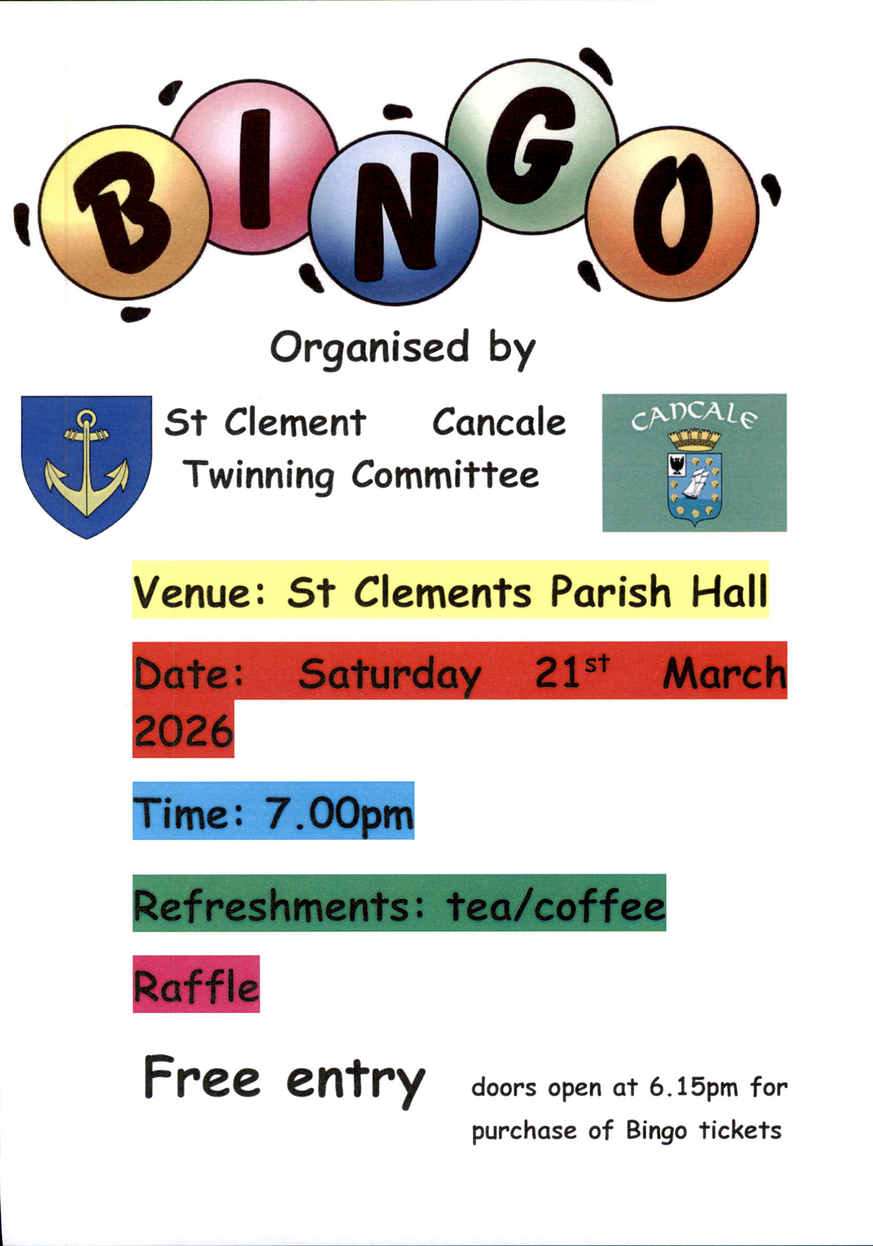 St Clement Cancale Twinning Committee Bingo